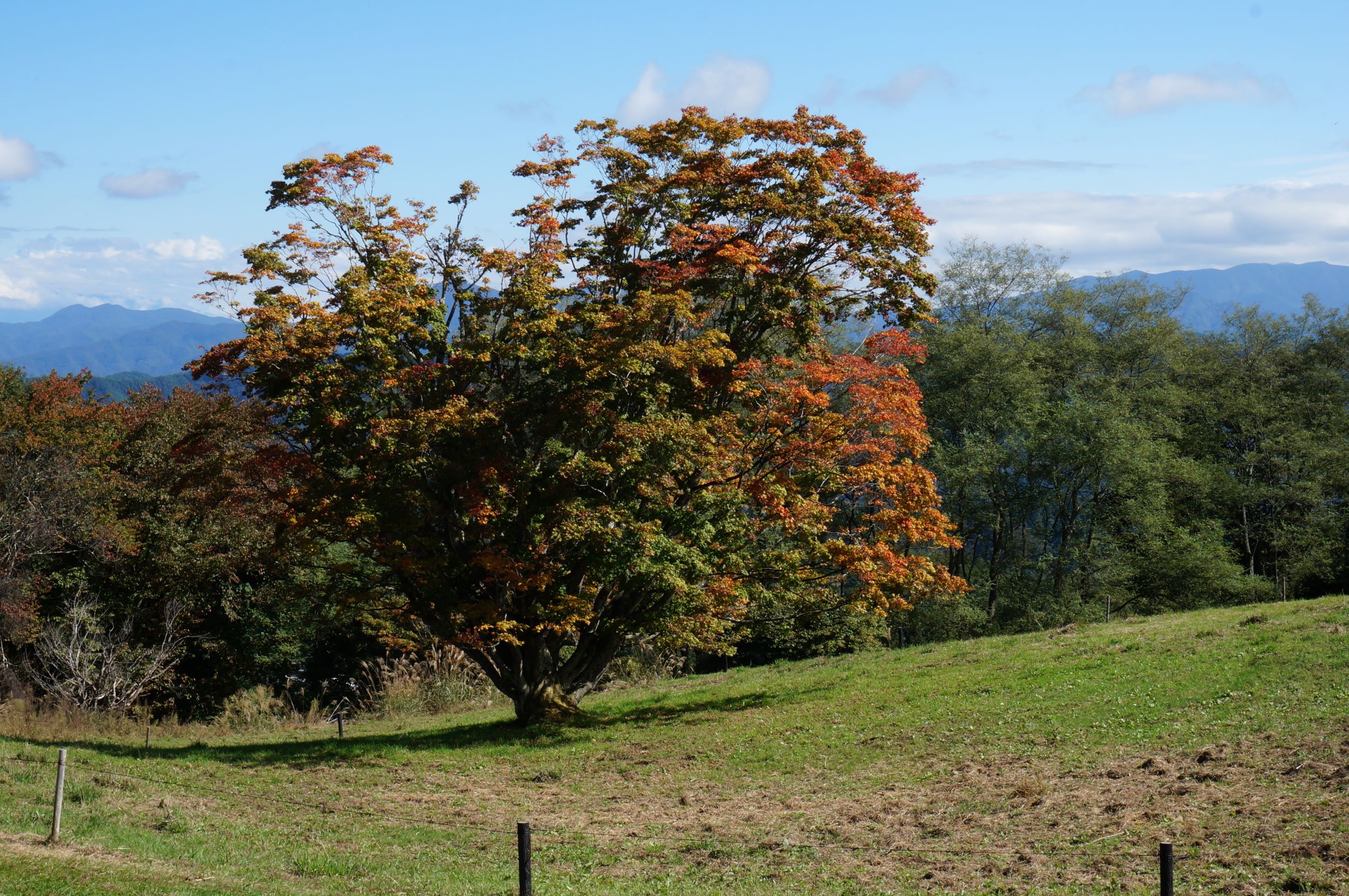 青空と大かえで 2025年10月20日周辺観光wpmaster 10月20日 紅葉の名所、池田町大峰高原の大かえでを偵察してきました。 ちょっとまだ全体に青っぽいですかねー。 七色に色づく見ごろは1週間ぐらいあとかもしれません。 それはそれとして、青空の下で気持ちよさそうに日を浴びている大かえで、 観ていてほっこりした気分になりました。 当ゲストハウスからは車で20分ほど、お出かけしてみてはいかがでしょうか。