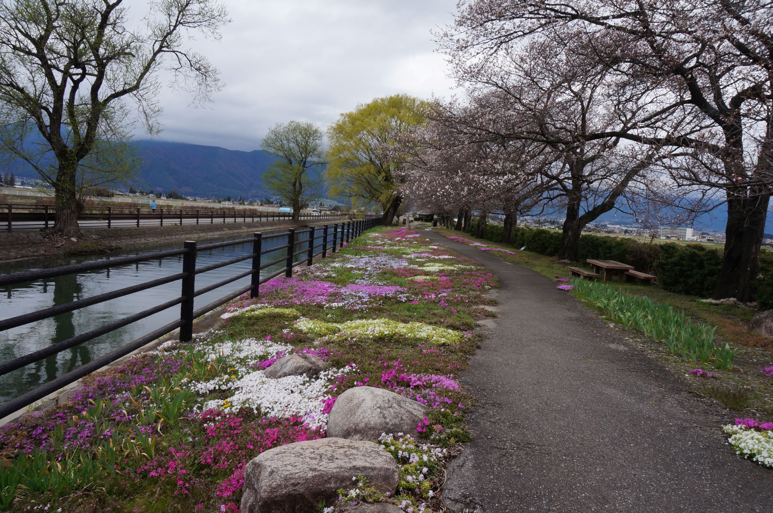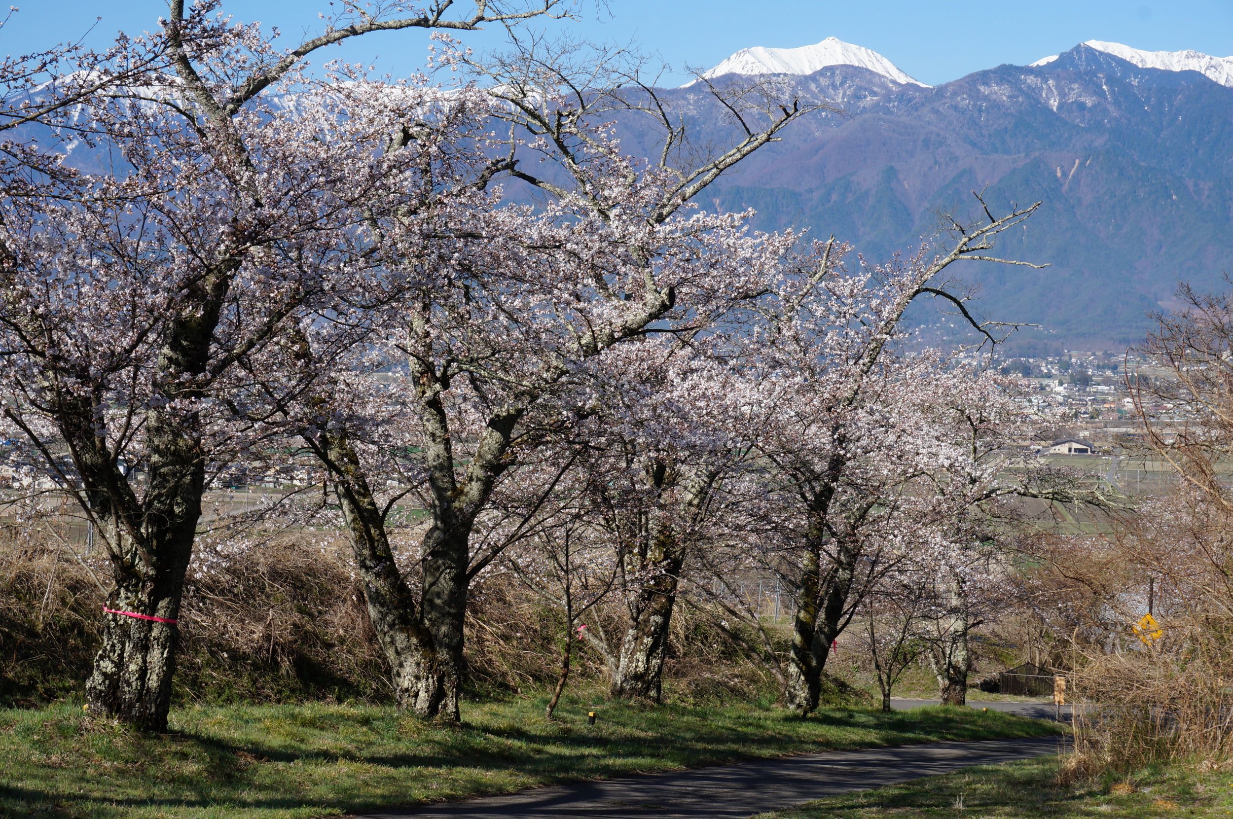 きのう見に行った、車で20分の安曇野市「じてんしゃひろば」も4分咲きくらい。